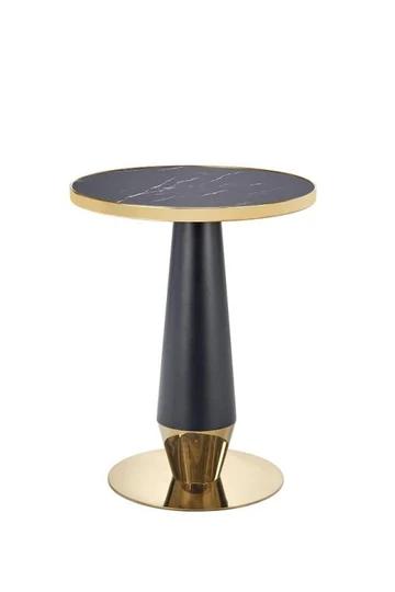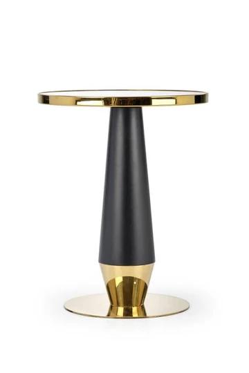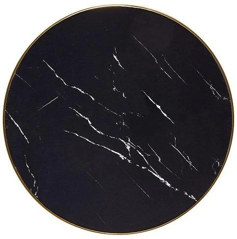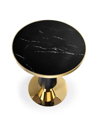 Vďaka malým rozmerom je stôl ideálny do menších miestností, kde nie je miesto na väčší nábytok. Doska stola je ozdobená dekorom čierneho mramoru a zlaté prvky mu navyše dodávajú jedinečné kúzlo.
