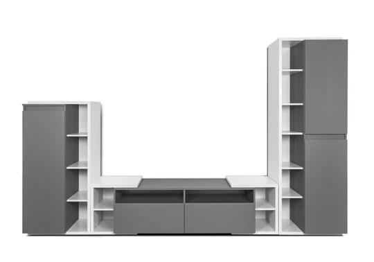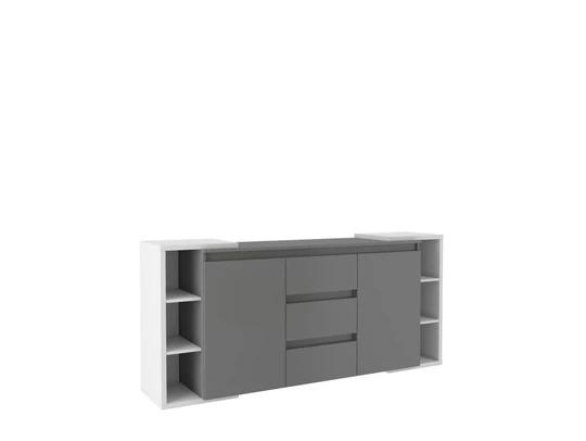 Predné dosky jednotlivých kusov nábytku zo zostavy sú vyrobené z laminovanej dosky s hrúbkou 16 mm vo farbe antracitu s ABS hranami s hrúbkou 1mm. Korpus skriniek tvorí laminovaná doska s hrúbkou 22 mm vo svetlo šedej farbe s ABS hranami 1mm v kombinácii s laminovanou doskou s hrúbkou 16 mm vo svetlo šedej/antracit farbe s ABS hranami 1 mm. Všetky skrinky majú strieborné plastové nôžky s výškou 10mm.