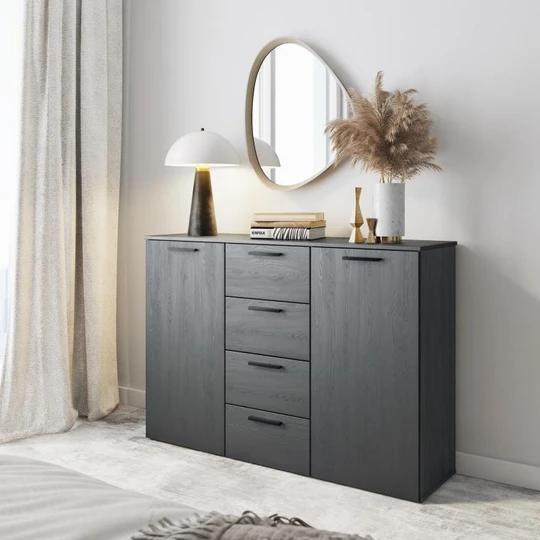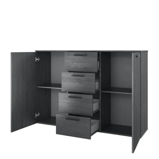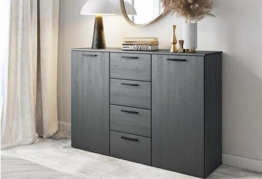Komoda spĺňa dnešné požiadavky na funkčnosť. Disponuje štyrmi suplíkmi a dvoma postrannými dverami, za ktorý mi sa ukrýva polica. Zuzana je vyrobená z kvalitného lamina, vďaka ktorému je odolná voči poškriabaniu, oderom, vyblednutiu a krátkodobému pôsobeniu vody.