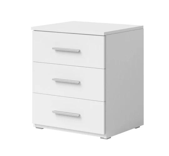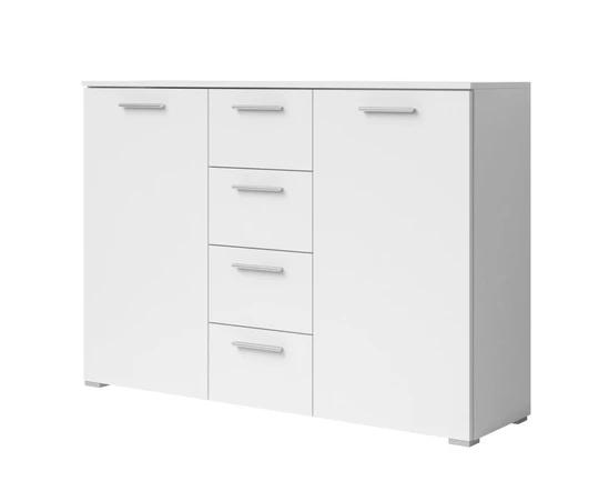 Komoda má dvoje dvierka a 4 šuplíky. Klasický nočný stolík disponuje 3 zásuvkami.