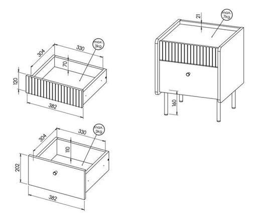 2x NOČNÝ STOLÍK P12 - výška 49,9 cm, šírka 42 cm, hĺbka 40 cm