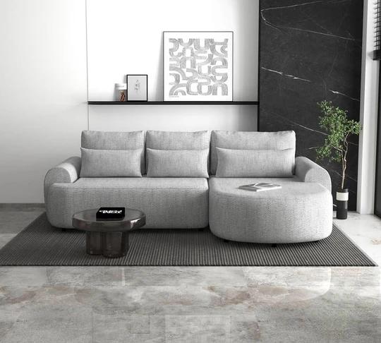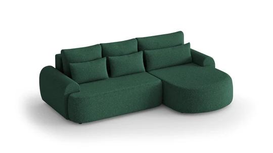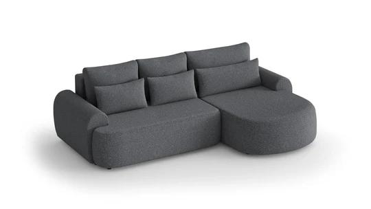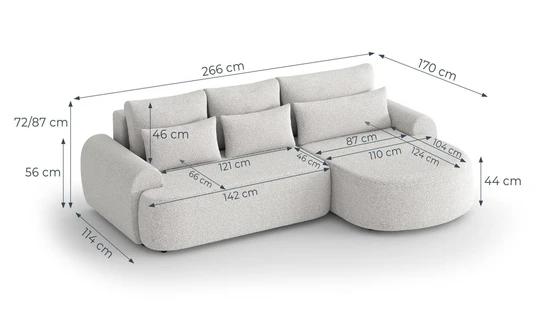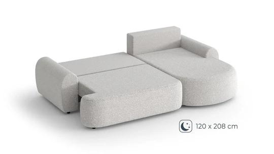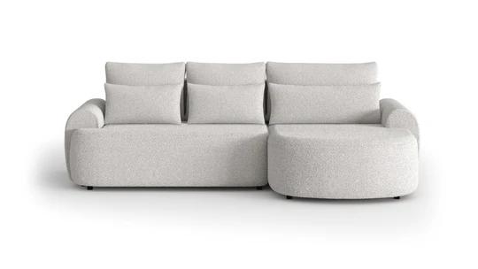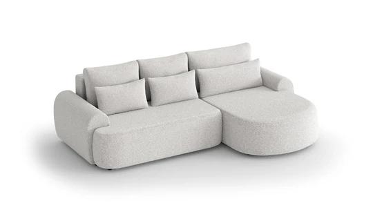 Trendy boucle rohová sedacia súprava bude perfektným miestom na príjemne strávené chvíle doma. Pohodlné sedenie dopĺňajú dva rady vankúšikov a zaoblené podrúčky, vďaka ktorým bude ideálny na leňošenie.