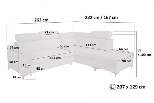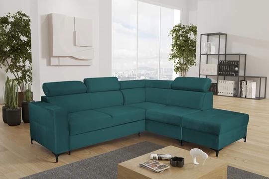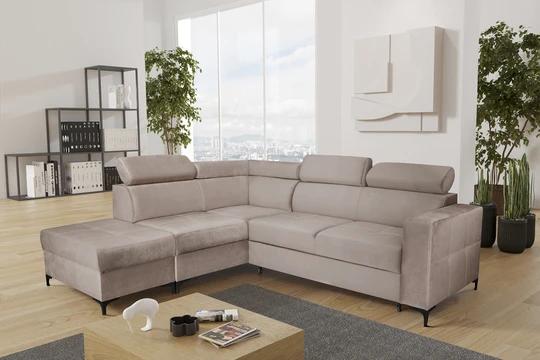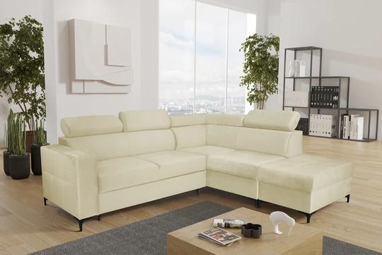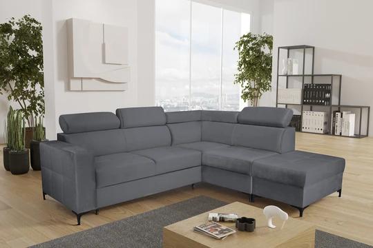 Rohová sedačka NEMO kombinuje moderný dizajn s funkčnosťou, čo ju robí ideálnou voľbou pre každý štýlový interiér. Sedačka je vybavená polohovacími záhlavníkmi pre maximálny komfort a elegantnými čiernymi nôžkami, ktoré dodávajú sofistikovaný vzhľad. Vďaka rozkladaciemu mechanizmu ponúka praktickú funkciu spania a úložný priestor pre lôžkoviny alebo iné potreby.