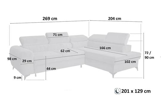 Zadná strana je čalúnená, takže ju môžete umiestniť do rohu aj stredu miestnosti. Sedačka ponúka možnosť meniť druh a farbu látky podľa svojich preferencií. Rovnako je na výber strana rohovej časti sedačky.