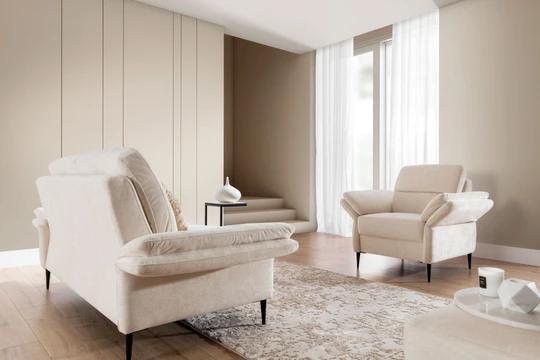 Toto kreslo spája elegantný vzhľad s modernými funkciami. Vďaka nastaviteľným podrúčkam, ktoré sa ľahko prispôsobia vašim potrebám. Polohovateľné bočné opierky menia šírku nábytku (90-120 cm), odporúčame umiestňovať kreslo do väčších, otvorenejších priestorov.