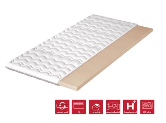 Výplň tohto dvojstranného toppera tvorí kvalitná HR pena, ktorá sa vyznačuje pružnosťou a prispôsobivosťou sa ľudskému telu. Vďaka otvorenejšej štruktúre má HR pena dobrú priedušnosť, teda ľahšie vyrovnáva teplotné rozdiely. Výplne zo studenej peny sa vyrábajú bez chlóroflórokarbónátov a tým šetria životné prostredie. Výška matraca je 5 cm.